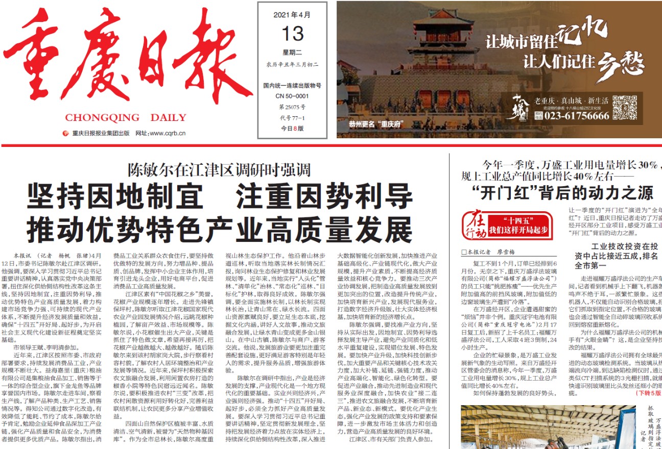 市委书记陈敏尔赴江津区调研,了解农村人居环境整治和产业发展